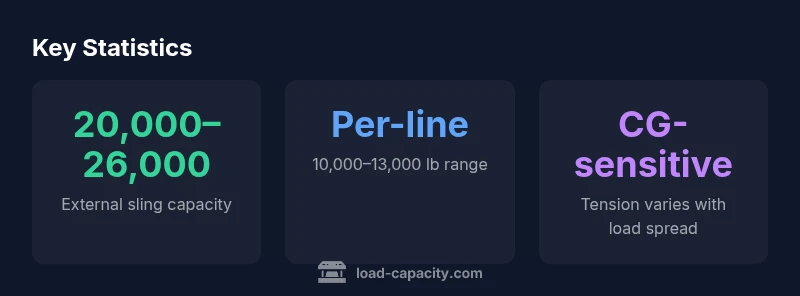 | Dual-line external sling | 20,000–26,000 total | Total capacity bounded by CG; distribution affects line tension |