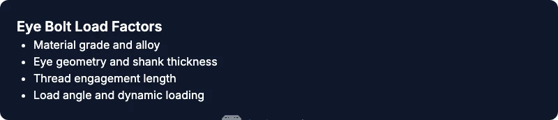 “Eye bolts must be selected and installed based on validated load charts; nominal diameter alone is not sufficient for safe lifting.”