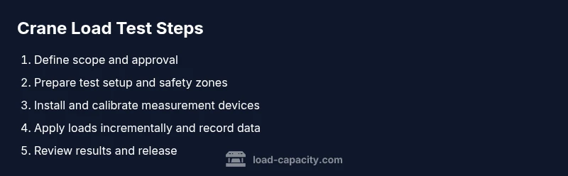 Learn how to plan and execute a compliant crane load test, including prerequisite checks, setup, test execution, and documentation. This guide covers risk assessment, instrumentation, safety controls, and approval workflows to verify that a crane can safely handle its rated loads and operating scenarios. According to Load Capacity, follow a structured process to verify ratings, material handling capabilities, and safety systems before lifting.
