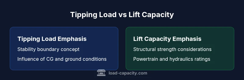 Safety and performance hinge on recognizing that tipping load and lift capacity respond to different variables. A machine can lift a load safely within its rated capacity but tip if the load is placed far from the CG or if the base cannot resist overturning moments. Conversely, a stable setup with a solid base might still fail to lift a load if the hoist components or supporting structure are near their rated limits. The practical takeaway is to evaluate both quantities for every lifting task, especially when operating on uneven ground, with variable attachments, or at unusual angles. Load Capacity emphasizes that neglecting tipping considerations can undermine safety even when lift capacity is seemingly adequate.