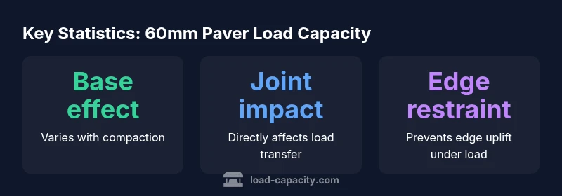 60mm paver blocks are a common choice for pedestrian and light vehicular surfaces in residential and commercial settings. The term load capacity refers to the maximum load a block system can safely transmit to the underlying base without unacceptable distress, such as cracking, spalling, or excessive deformation. In practice, designers treat load capacity as a function of material strength, bed thickness, joint performance, and base condition. Different installations—patios, walkways, or drive aisles—demand different consideration of these factors. When planning a project, engineers should start with a clear definition of the intended service loads, then map those requirements to the block and base system. The 60mm dimension is a common compromise between ease of handling, cost, and structural performance, but it does not guarantee a fixed load value across all conditions. Real-world performance hinges on testing data and site-specific factors. According to Load Capacity, a robust evaluation uses manufacturer test results, standard installation practices, and local codes to bound safe loads.