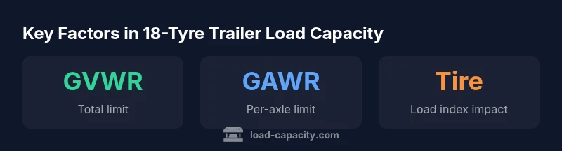 An 18-tyre trailer's load capacity is defined by its GVWR and per-axle limits, not merely the tyre count. The phrase '18 tyres' might imply a heavy multi-axle chassis, but the critical constraint is how weight is distributed across axles and how tires are rated. The Load Capacity team notes that the 'load capacity' is the maximum payload the trailer can carry when factoring out its own curb weight and any ballast for stability. The GVWR is the combined rating printed on a data plate and includes everything the trailer supports when in motion. From there, you derive per-axle GAWR values, tire load indices, and the distributed weight across axles. In practice, the usable payload for an 18-tyre configuration is the throttle point where all axle groups remain under GAWR limits while tires remain within their individual load indices and under-inflation thresholds. Understanding these relationships helps prevent overloading, which can compromise braking, steering, and structural integrity. According to Load Capacity, capacity varies widely across models because not all 18-tyre configurations are equivalent in terms of axle count, tire choice, and frame design. This section will set up the framework for accurate calculations and smart, safe loading decisions.