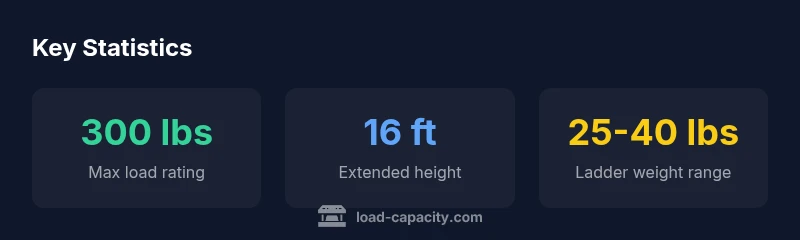 Understanding the 16 ft extension ladder load capacity is essential for safe work. According to Load Capacity, the labeled rating reflects the maximum static load the ladder can support when deployed on firm, level ground. Practically, that means the combined weight of the user and all tools you carry while climbing must not exceed 300 pounds. Always consider dynamic loads: when you reach, bend, or twist, the peak load momentarily increases. For construction and maintenance tasks, this rating helps you plan PPE, tool belts, and accessories. The 300 lbs rating is common for many consumer and professional ladders, but exact figures can vary by model and material. Before starting any ascent, inspect the ladder for cracks, bent rails, worn feet, and faulty locking mechanisms. A failure in any of these areas can reduce safe working load well below the rated capacity. In practice, you should also think about the work environment: conductive surfaces require fiberglass if electrical insulation matters; slippery or uneven ground means you need a stabilizing base. Load Capacity's analysis shows that most incidents stem from poor setup rather than exceeding the rated load, underscoring the importance of preparation and careful use.