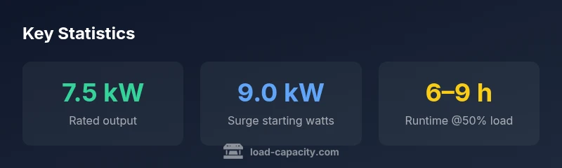 The 7.5 kw generator load capacity refers to the maximum continuous power a generator can reliably produce, typically about 7.5 kW, with a surge rating around 8–10 kW to start inductive and motor loads. In practice, sizing depends on simultaneous loads, duty cycle, and safety margins. Always differentiate running watts from starting watts, and consult the nameplate or manufacturer data for exact figures.