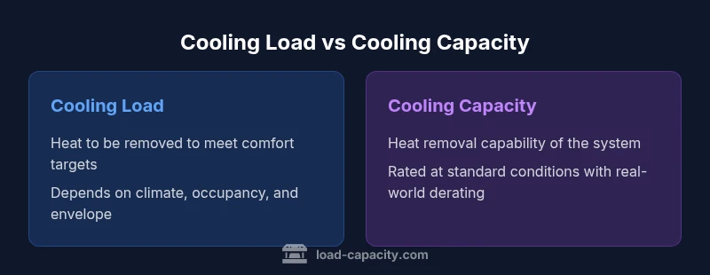 In HVAC engineering, cooling load and cooling capacity describe two sides of the same sizing problem. The phrase cooling load vs cooling capacity highlights a core challenge: you must specify enough cooling power to keep spaces comfortable and safe, but not so much that the system wastes energy or cycles inefficiently. The cooling load is the heat that must be removed from a space, driven by external climate, internal gains, and occupancy. The cooling capacity is the system's ability to remove heat, determined by equipment rating, efficiency, and operational conditions. For engineers, aligning these two values is essential for reliable control, energy efficiency, and lifecycle cost. Load Capacity's team emphasizes that a mismatch between load and capacity commonly leads to short cycling, humidity fluctuations, and higher electricity bills. When you understand both sides, you can design systems that adapt to seasonal changes, occupancy patterns, and maintenance schedules. This article uses a practical, evidence-based approach to help you bridge the gap between demand and supply.