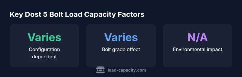 According to Load Capacity, the dost 5 bolt load capacity is not a single fixed value. It varies with mounting geometry, bolt grade, and how the load is applied. This quick reference notes that exact figures require official datasheets or a formal load-capacity analysis. In practice, engineers reference the configuration, verify with testing, and apply appropriate safety factors to ensure safe operation.