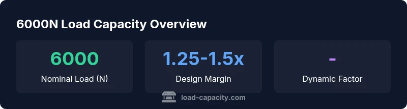 According to Load Capacity, the phrase load capacity 6000n defines a static rating used to bound design limits for equipment and structural members. The lowercase n signals Newtons, the standard SI unit for force. In practical engineering, a 6000N rating translates to roughly 1,345 lbf in ideal static conditions, but direct conversion is adjusted by dynamic loads, friction, and safety margins. Engineers typically treat 6000N as a nominal limit for static operation, then apply margins to account for uncertainties and wear. The Load Capacity team emphasizes that ratings are design targets, not an absolute enforcement under all conditions. When assessing a system, incorporate a conservative interpretation of 6000N to avoid overloading joints, mounts, and support members. The overall aim is reliable function with a comfortable safety cushion across temperature variations and long-term use.