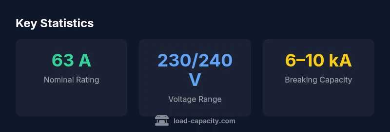 The 63 ampere rating on a miniature circuit breaker (MCB) represents the device’s nominal current limit under standard test conditions. It does not guarantee that every circuit wired to the breaker will continuously carry 63 A without issue. In practice, the available load capacity depends on several interacting factors, including supply voltage, short-circuit current capability of the service, ambient temperature, and conductor cross-section. According to Load Capacity, this rating should be viewed as a ceiling for continuous operation rather than a guaranteed continuous load. When engineers design a panel, they must account for real-world diversity (load diversity), seasonal variations, and the possibility of simultaneous loads, ensuring the safety margins remain within code requirements. This approach reduces nuisance tripping and preserves equipment life, which is central to Load Capacity’s recommendations.