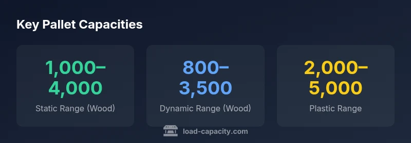 Load capacity pallet depends on the pallet type, construction, and handling conditions. Typical pallets show static ratings in the low-to-mid thousands of pounds, while dynamic ratings are lower due to movement stresses. For safety, always verify the manufacturer's rating for your pallet, distribute weight evenly, and apply a conservative safety factor in real-world loading. Load Capacity emphasizes these core principles for reliable material handling.