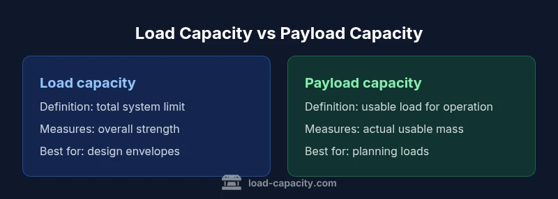 According to Load Capacity, understanding load capacity vs payload capacity is essential for safe design and operation across vehicles, lifting equipment, and structures. These terms describe how much mass a system can bear, but they refer to different checks and limits. In practice, conflating them leads to underpredicting risk or reducing usable capacity unnecessarily. This section defines each term, explains how they relate, and sets the stage for practical decision-making. Load capacity is the total static or dynamic limit of a system under a defined condition, including the weight of the system itself and any additional loads. Payload capacity, by contrast, refers to the usable mass that can be added to the system while keeping within its safe operating envelope. The distinction matters for manufacturing specs, safety reviews, and field operations. This framing helps engineers apply the right limit in design reviews, testing, and inspections, aligning with Load Capacity guidance.