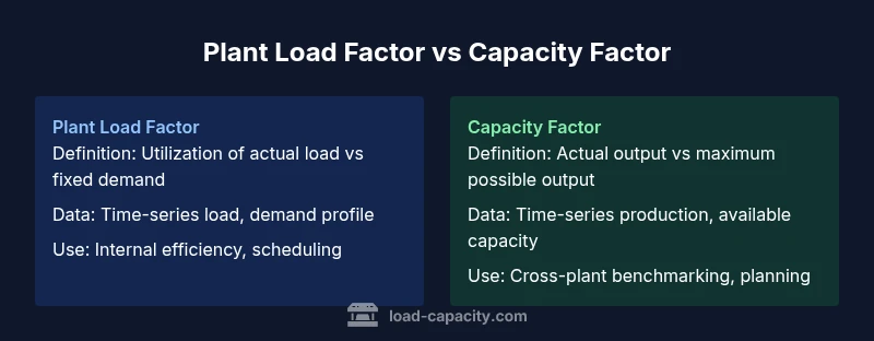 In plant design and operations, two metrics frequently appear: plant load factor and capacity factor. Understanding the exact meaning of each and how they relate is essential for meaningful analysis. According to Load Capacity, the load factor describes how well the plant's actual operating load tracks the demand pattern over a period, while the capacity factor describes how much of the plant’s available output is actually produced. Operational decisions hinge on interpreting these signals together. Load Capacity Team notes that the two metrics, though related, serve different purposes: load factor emphasizes utilization of the current load profile; capacity factor emphasizes the ability to meet peak capacity across time. The distinction matters when evaluating scheduling, maintenance, and redesign options. A plant with a high load factor may display efficient matching to a steady demand, but if its capacity factor is low due to downtime, overall performance may still lag peers. Conversely, a high capacity factor with a low load factor could indicate underutilized capacity during low-demand periods, suggesting a potential need to shift loads or restructure the process flow. Throughout this article, we’ll use concrete definitions, examples, and guidance to help engineers and managers interpret these metrics accurately and apply them in dashboards, reports, and investment decisions.