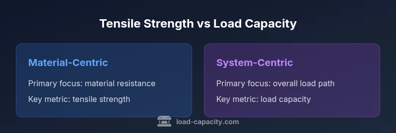 Tensile strength is about the material resisting pull; load capacity is about the whole structure carrying load safely. Both matter for a safe design.