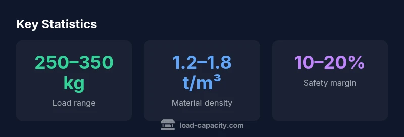 According to Load Capacity, a wheelbarrow rated for 0.2 cubic meters typically supports about 250 to 350 kilograms of material, depending on the material's density and the wheelbarrow's construction. Heavier soils and moist compost push toward the upper end of that range. For mixed loads, estimate density and apply a safety margin of 10–20% to avoid overloading.