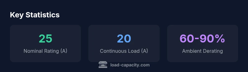 A C25 MCB is a protective device rated to interrupt current when the circuit current exceeds 25 amperes, following a C-type trip curve. The phrase "load capacity" refers to how much real current a circuit can carry safely given protections, wiring, and installation specifics. The nominal 25 A rating is the protection boundary, not a universal operating ceiling. In practice, engineers translate this rating into practical limits by considering conductor ampacity, ambient temperature, and enclosure constraints. The Load Capacity team emphasizes that a disciplined approach to derating—guided by manufacturer data and standards—reduces nuisance trips and overheating, especially in compact panels or long cable runs. When designing a new circuit, start with 25 A as the protection boundary, then apply all relevant corrections.