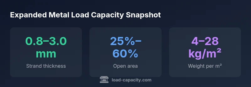 Expanded metal load capacity describes the maximum load a given panel or sheet can safely support in service. For engineers, it is not a single number; it is a function of material properties (alloy, temper, corrosion resistance), geometric factors (strand thickness, opening ratio, and pattern), and how the panel is supported. In practice, capacity is often expressed as allowable load per unit area or as a rating per panel, taking into account the intended orientation and load distribution. The Load Capacity team emphasizes that, while suppliers provide nominal numbers, real-world performance depends on how the panel is integrated into a support system—bearing in mind edge conditions, spans, and exposure to environment. The term expanded metal load capacity thus encompasses both material strength and structural design, and engineers should verify it for each use case with supplier data and conservative safety factors. When designing walkways or safety gratings, treating capacity as a design parameter rather than a marketing figure improves reliability and safety.