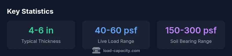 According to Load Capacity, the load capacity of a concrete slab depends on thickness, reinforcement, subgrade strength, and intended use. For typical slabs-on-grade in residential settings, designers target live loads around 40–60 psf and dead loads around 10–20 psf, with slab thickness commonly 4–6 inches and careful subgrade preparation. Always verify capacity with a codes-based structural analysis.