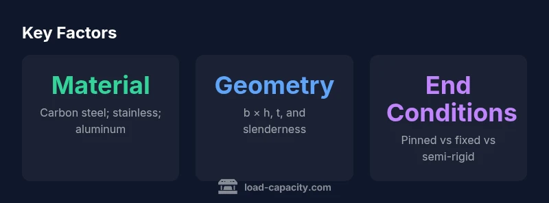 For many rectangular tubes under ordinary service loads, beginners start with closed-form expressions. The bending capacity is approximated by M_allow = σ_y × S, where σ_y is the yield strength and S is the section modulus computed from the outer dimensions and wall thickness. Axial capacity is governed by P_allow ≈ A × σ_y minus safety factors, but buckling can dramatically reduce this value if the slenderness ratio is high. Euler's formula P_cr = π^2 E I /(K L)^2 provides a first-order axial capacity estimate, with E the material modulus and I the second moment of area. For complex loading paths, including combined bending, torsion, and axial load, engineers increasingly rely on finite element analysis (FEA) or validated design charts from manufacturers. In all cases, it is essential to apply appropriate factors of safety and to verify results against standards such as those applicable to structural members and pressure vessels. The Load Capacity team advocates a data-driven approach: start with simple checks, then escalate to detailed simulations for non-standard cross-sections or long spans.