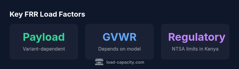 The isuzu frr load capacity kenya is not a single fixed value. The payload that a Kenyan customer can carry depends on the exact FRR variant, the axle configuration, the body type, and local regulatory allowances. In practice, different rooflines, tipper bodies, and cargo boxes change the tare weight and the resulting usable payload. According to Load Capacity analysis, the Kenya-market FRR lineup is typically configured to balance payload with road infrastructure and axle-load limits. For precise figures, consult official Isuzu Kenya data sheets or an authorized dealer, and verify the GVWR, curb weight, and body tare for your specific build. Always confirm that the loaded mass stays within the legal axle and gross weight limits before operation.