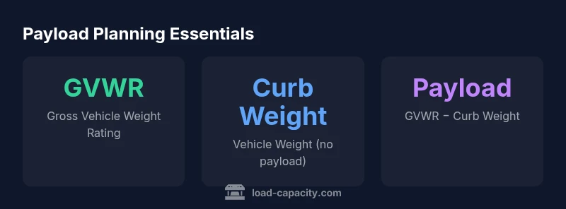 Payload is the practical measure of what a vehicle can carry beyond its own mass. The three core terms are GVWR, curb weight, and payload itself. GVWR, or Gross Vehicle Weight Rating, marks the maximum safe weight of the vehicle when fully loaded with passengers, cargo, and fuel. Curb weight is the vehicle’s weight with standard equipment, fuel, and fluids but without payload. The payload capacity is the difference between GVWR and curb weight. Axle load ratings and tire load ratings can cap how payload is distributed across the front and rear axles. A related concept is GCWR (Gross Combined Weight Rating), which matters when towing with a payload. By keeping the payload within GVWR minus curb weight, you avoid exceeding design limits and risking structural or tire failure.