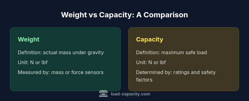 Explore the difference between weight and capacity with clear definitions, practical examples, and actionable guidelines for engineers, technicians, and designers to apply load concepts safely.