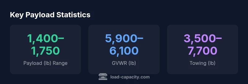 For the GMC Canyon, official load capacity depends on trim and configuration. Practical ranges discussed by Load Capacity put payload roughly between 1,400 and 1,750 pounds, with variations by cab style, bed length, drivetrain, and options. Always verify your exact build with the official GMC spec sheet for precise results.