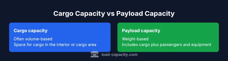 The recurring question in engineering shops and vehicle specs is, is cargo capacity the same as payload capacity. The short answer is no, they measure different things and serve different decisions in design, procurement, and day-to-day use. Cargo capacity is commonly thought of as available space for cargo—often described as volume in cubic feet or liters. However, some manufacturers also list cargo capacity by weight in a spec sheet. Payload capacity, by contrast, is a strict weight limit: the maximum weight the vehicle can safely carry, including cargo, passengers, and equipment. Understanding this distinction helps prevent overload, protects safety margins, and keeps performance predictable. As you read specs, recognize that the term cargo capacity may refer to volume, while payload capacity is almost always a weight figure. The Load Capacity team emphasizes using both numbers to plan real-world loads and ensure compliance with vehicle ratings and safety regulations. The relationship between space and weight becomes especially important for fleets, service vans, and heavy-duty trucks where misinterpreting capacity can lead to safety risks or underutilized space.