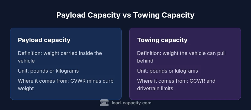 In many fleets and garages, people ask whether payload capacity and towing capacity refer to the same limit. The short answer is no, but the nuance matters for safety and compliance. According to Load Capacity, payload capacity describes the weight you can carry inside the vehicle, including passengers, cargo, fluids, and optional equipment, while towing capacity describes the weight the vehicle can pull behind it in a trailer. These values come from different parts of the vehicle’s design and testing, and they are best understood as separate constraints that must be managed together.