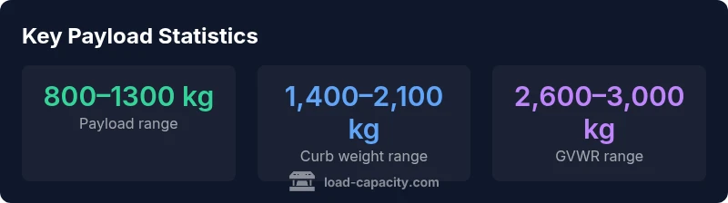 | Double Cab | 1,000–1,300 kg | Full crew comfort; payload varies with bed length |
