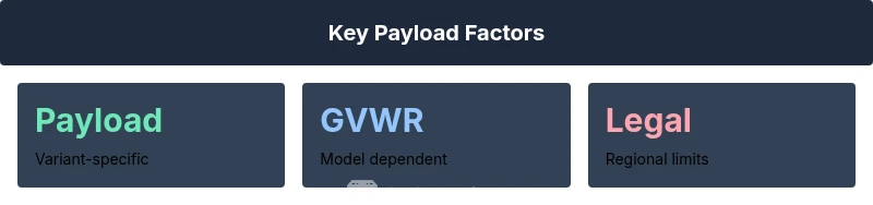 Underestimating any of these can lead to overloading, increased braking distance, heat buildup in brakes, and potential tire failure. Always verify the payload in the actual operating configuration rather than relying on nominal figures alone.